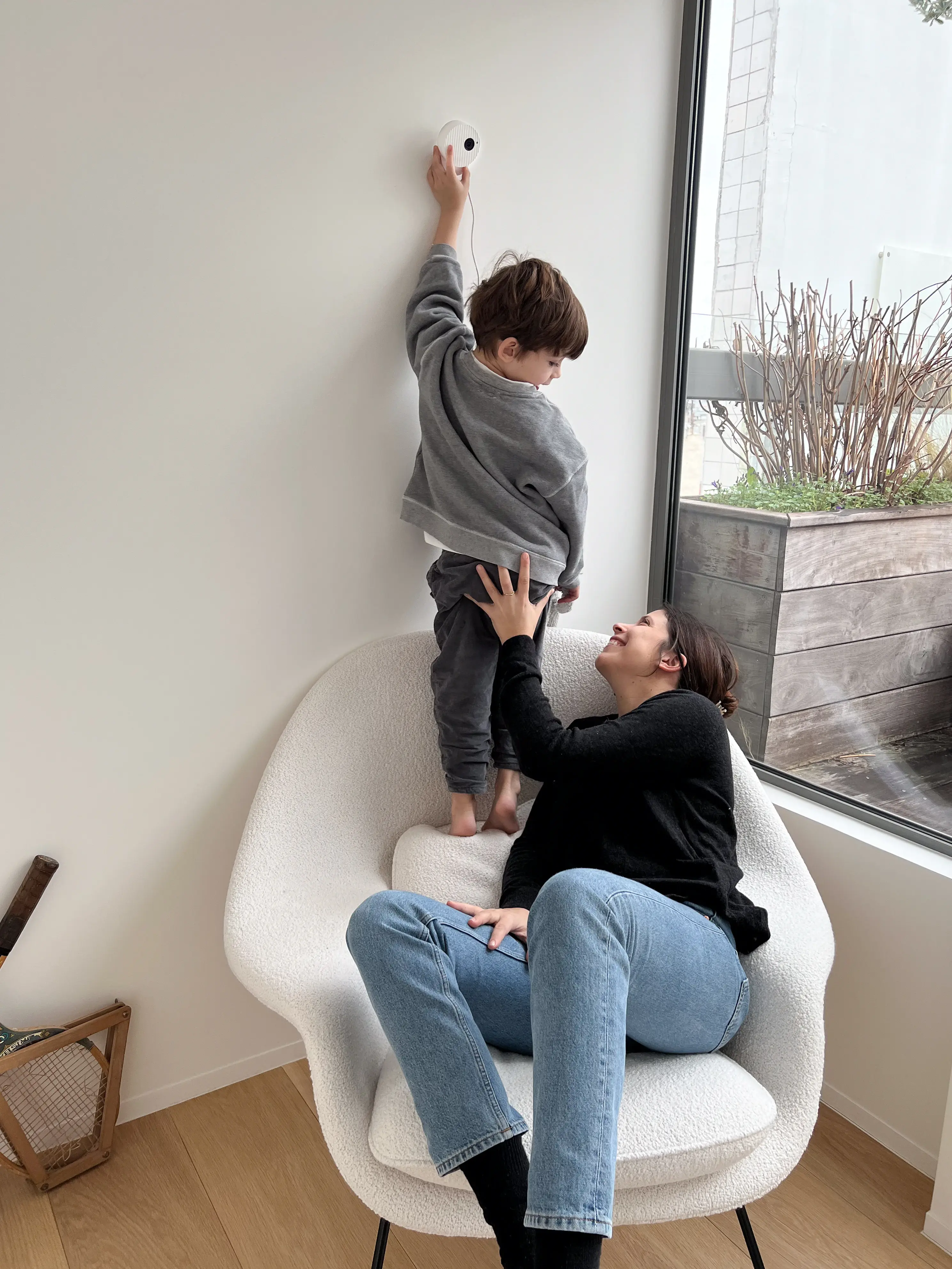 La caméra Qiara dispose d'un obturateur intelligent qui se ferme automatiquement et coupe le micro lorsque vous êtes chez vous. De cette façon, votre intimité est protégée à 100 %.