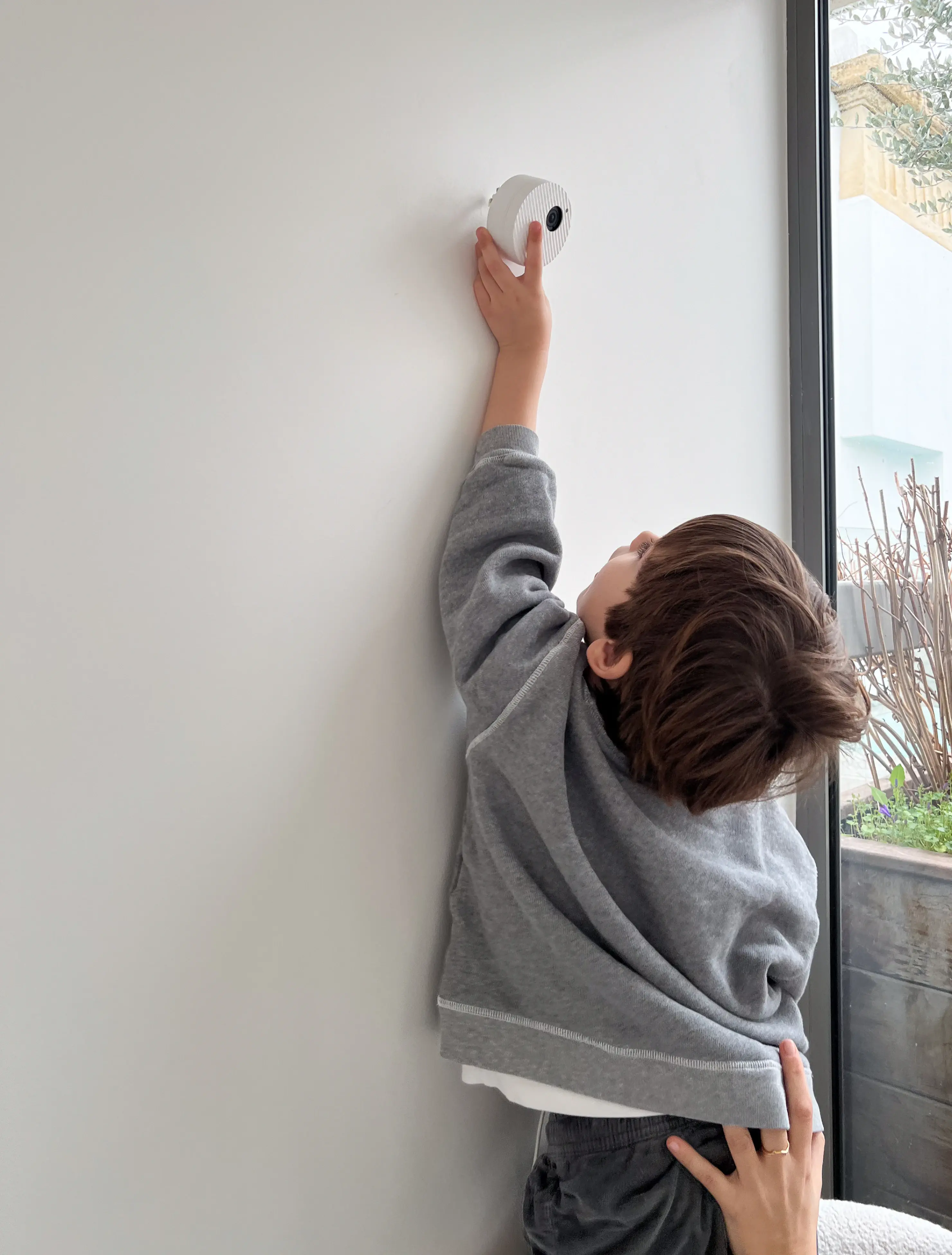 Vous pouvez la poser très simplement sur un meuble ou dans votre bibliothèque, et également la fixer au mur. La caméra est livrée avec un kit de fixation murale et de fixation d’angle. Tout est prévu pour vous faciliter l’installation.